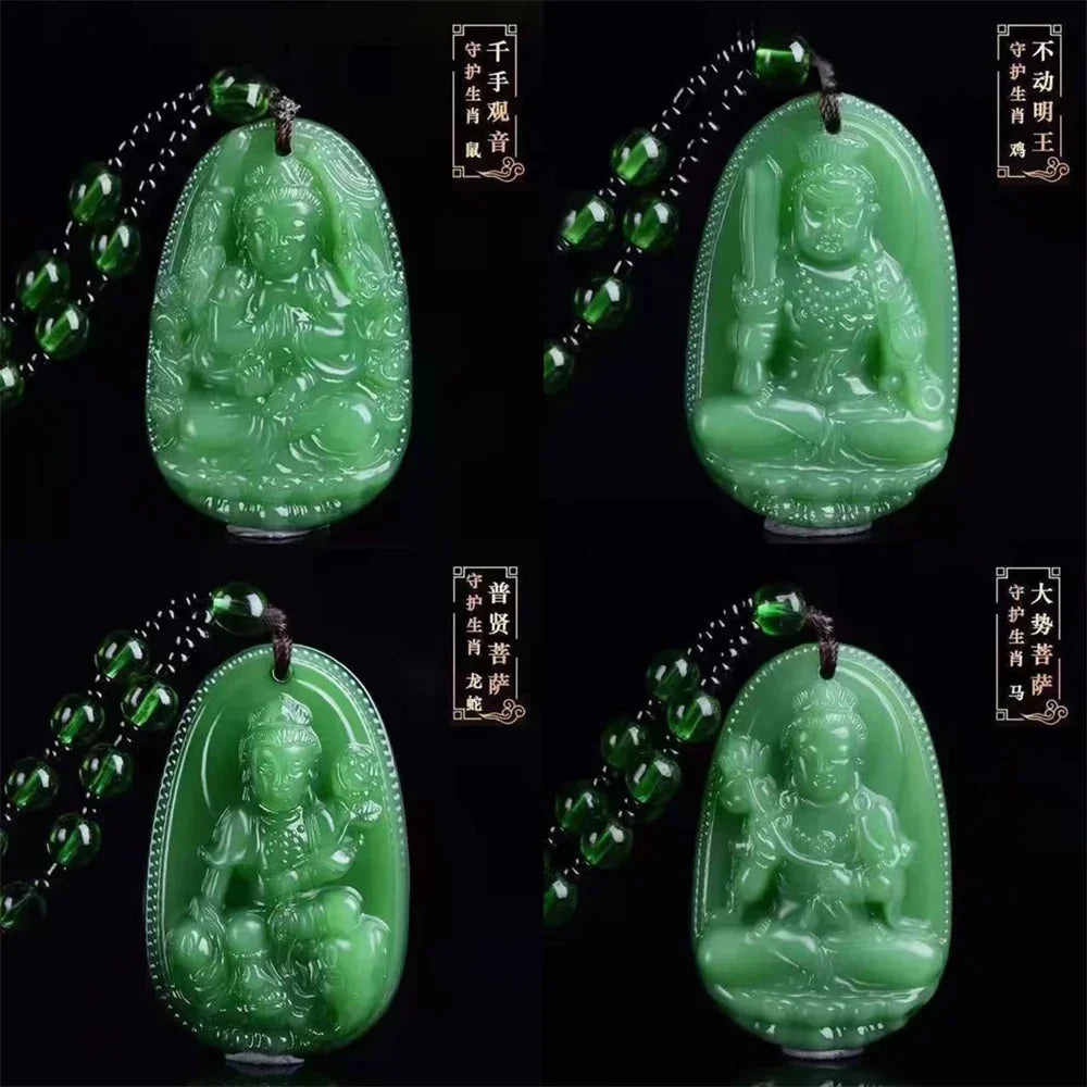 Jade Guanyin Pendant Necklace Protection Healing Handmade