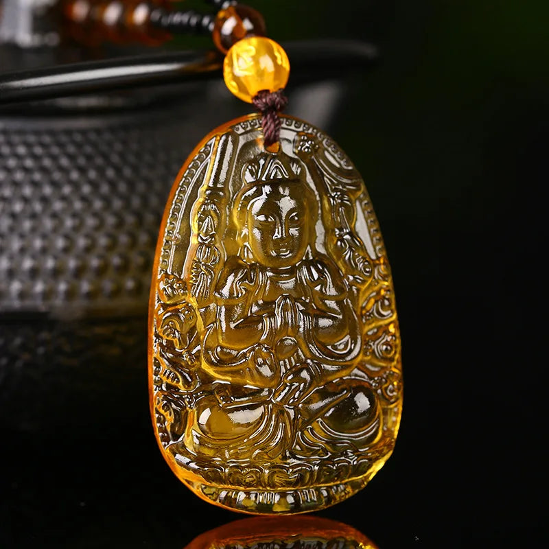 - Material: Citrinstein mit Buddha-Anhänger-Design