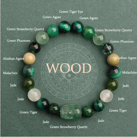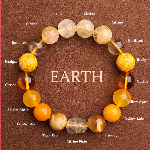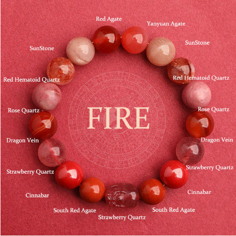 Fünf Elemente Kristall Erdbeerquarz Glücksbringer Armband