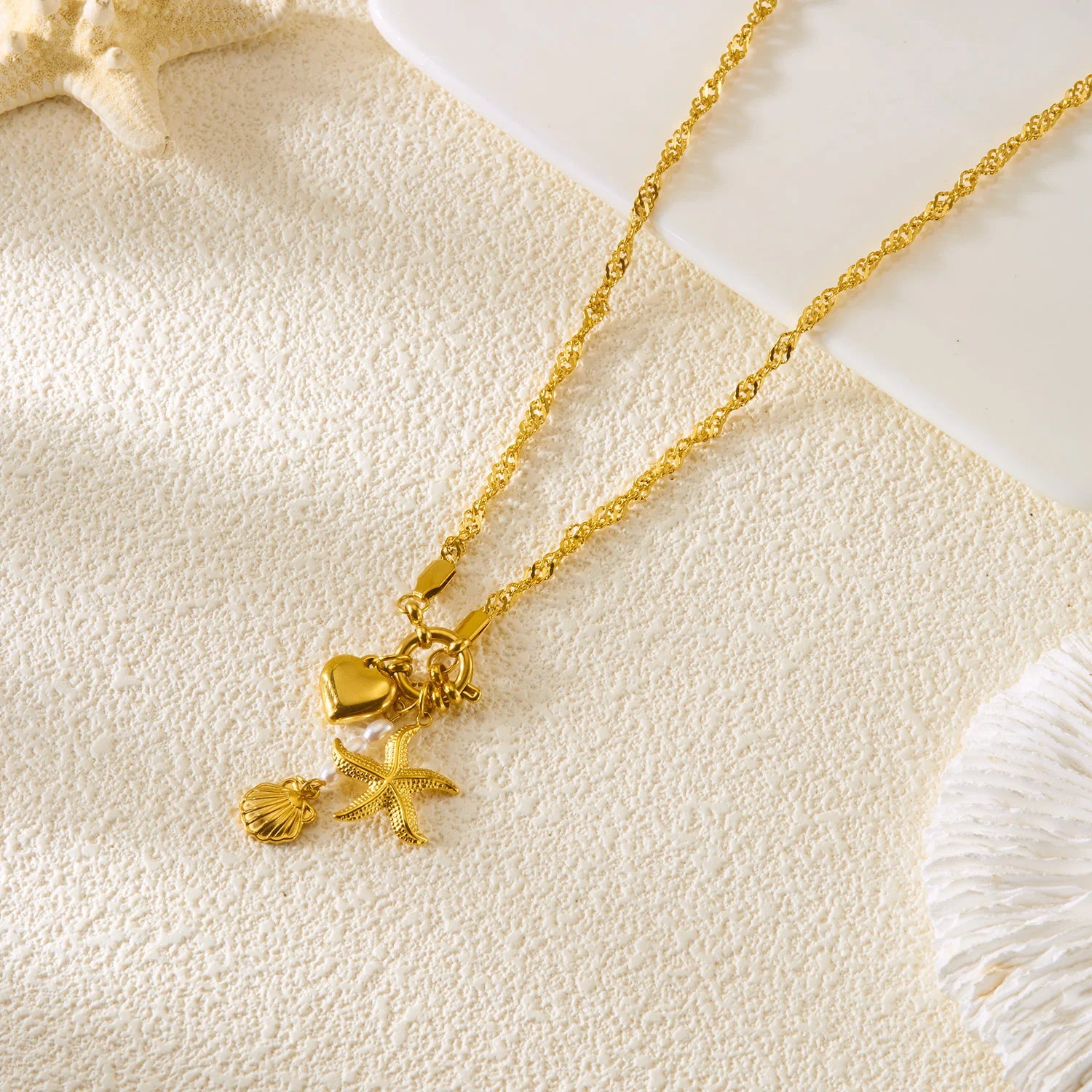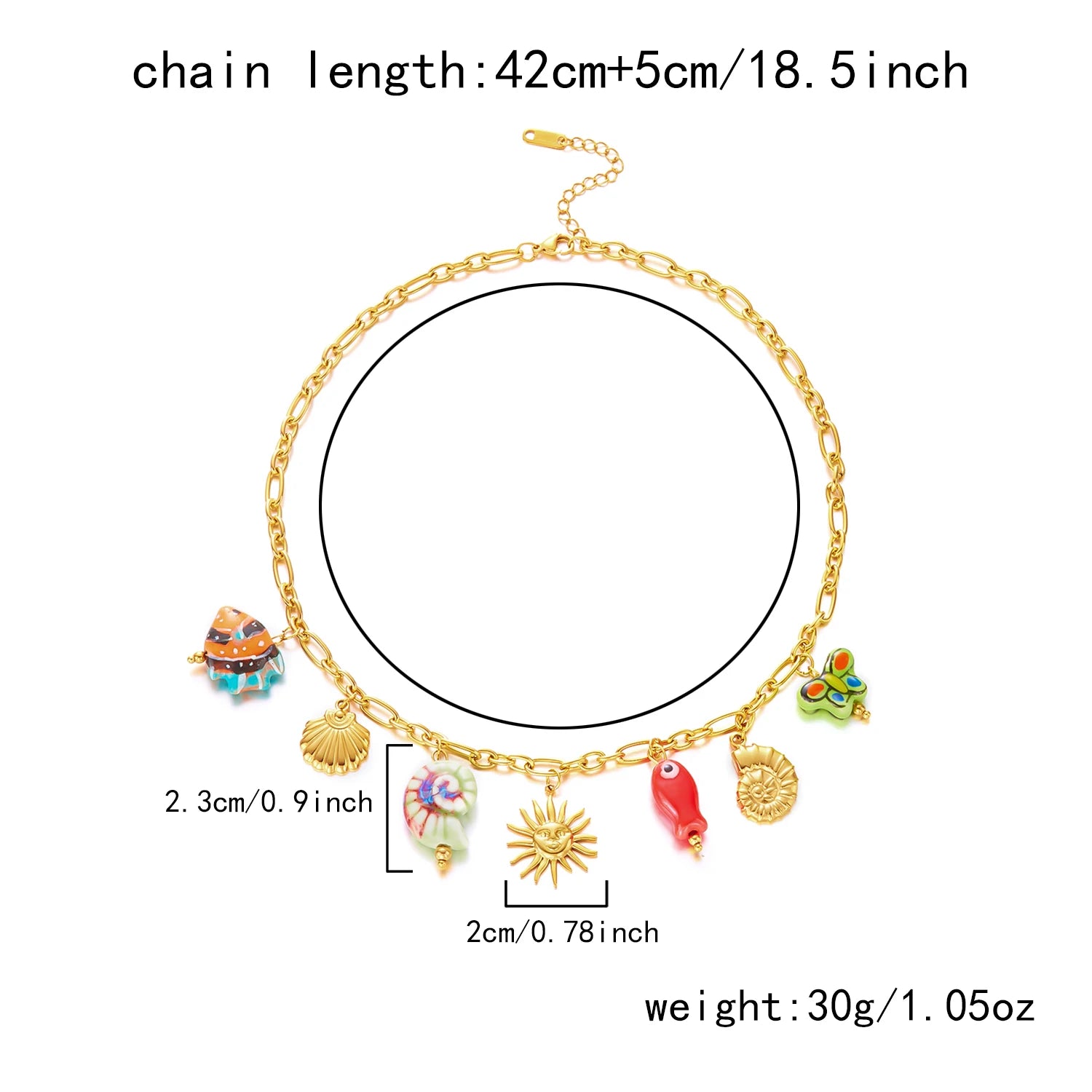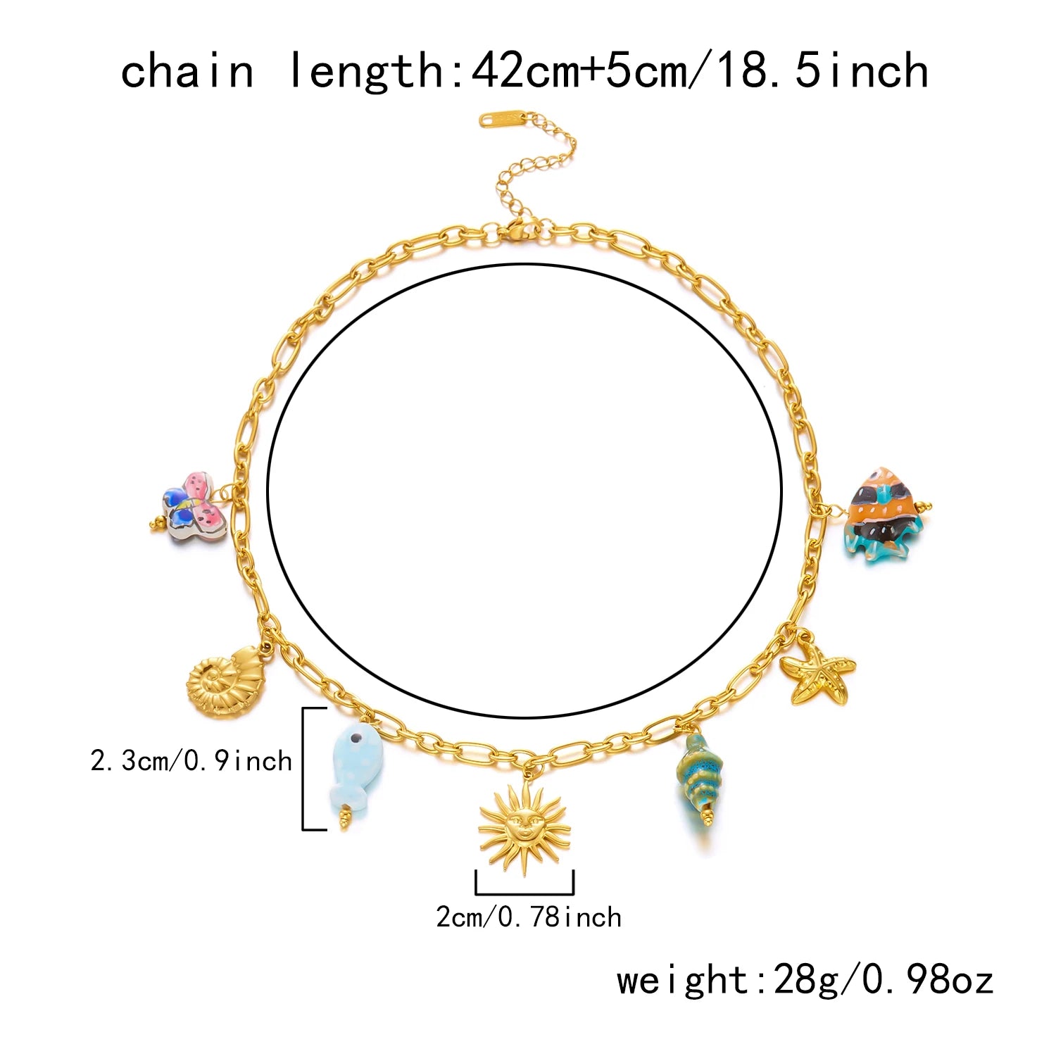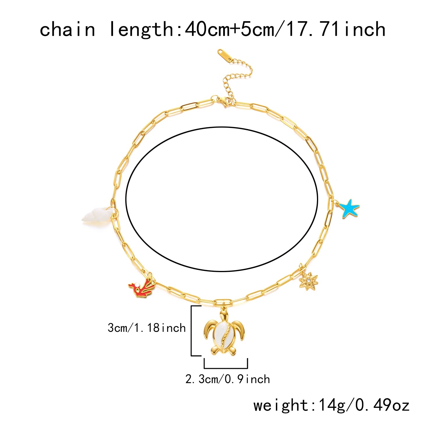 - Design: Showcases a starfish pendant along with other sea-inspired patterns like dolphins and turtles, reflecting a trendy animal style that's perfect for various looks.
