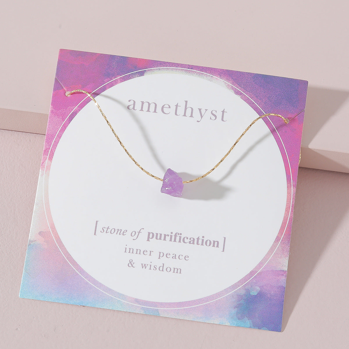 This necklace not only enhances your outfit with its striking amethyst gemstone but also supports a sense of calm and balance, as amethyst is traditionally associated with promoting relaxation and positive energy. It's a simple way to add a touch of serenity to your day, making it perfect for those seeking both aesthetic appeal and subtle emotional support.