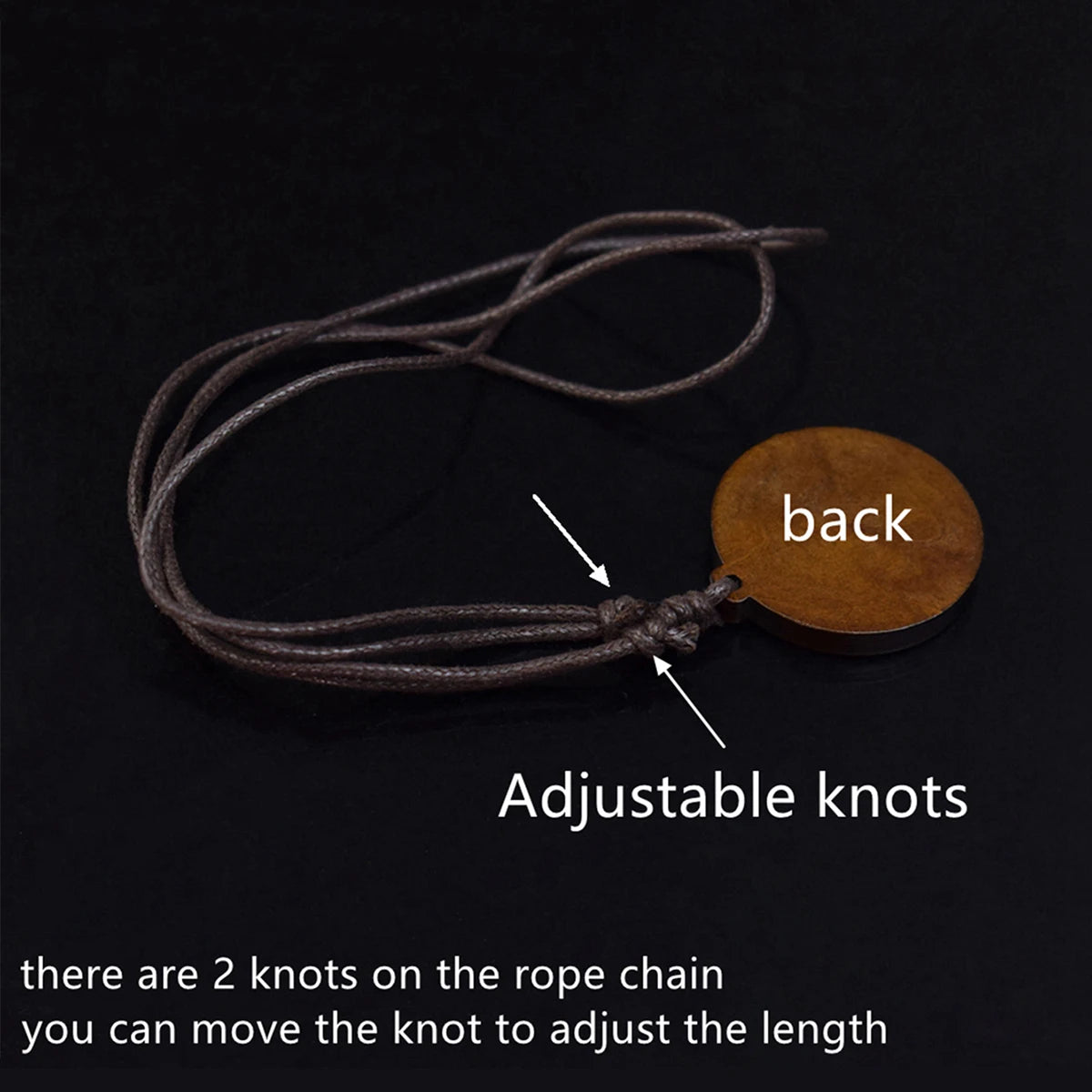 - Material: Natural wood pendant with glass cabochon (25 mm)