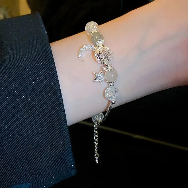 Experience the elegance of the Handcrafted Zircon Crystal Bracelet by Tinkers, a stylish accessory designed for women who appreciate timeless beauty and a touch of celestial balance in their daily outfits.