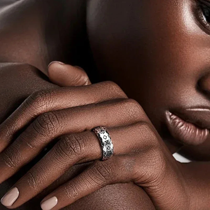 Viking Runes Ring by Tinkers celebrates the raw allure of Nordic symbolism with a sleek, modern edge. Crafted in durable titanium steel and etched with ancient rune motifs, it channels protective, grounding energy to support your spirit every day. Its versatile, unisex look moves effortlessly from boho to minimalist and ethnic-inspired styles.